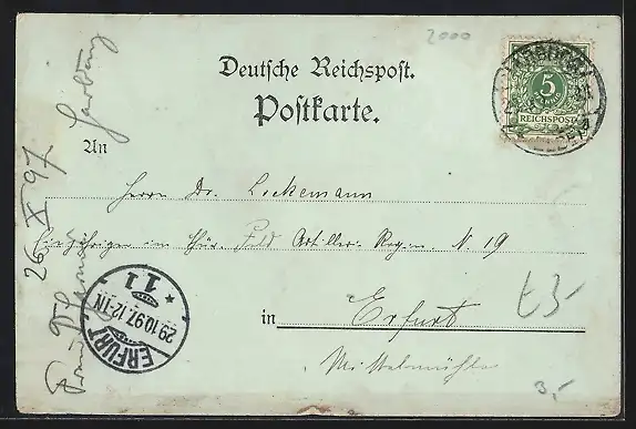alte Ansichtskarte, gelaufen 1897, guter Zustand