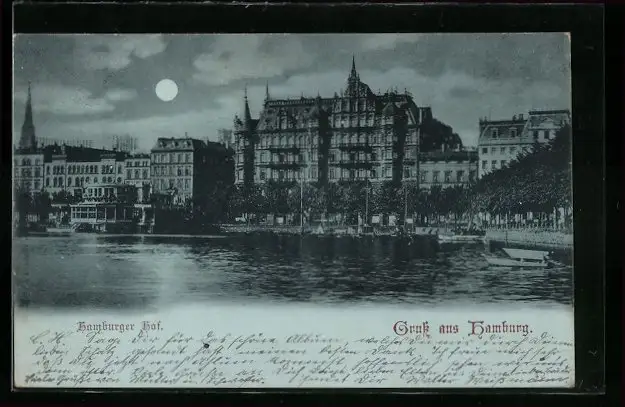 Mondschein-AK Hamburg-Neustadt, Partie am Hotel Hamburger Hof