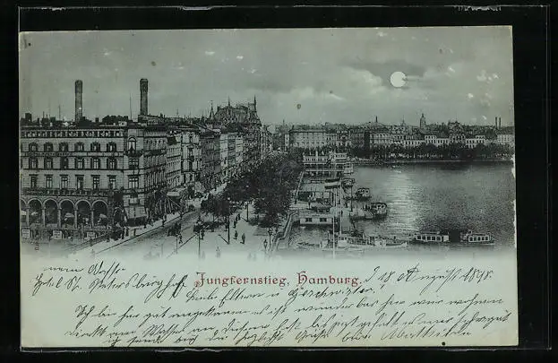 Mondschein-AK Hamburg-Neustadt, Strassenpartie am Jungfernstieg