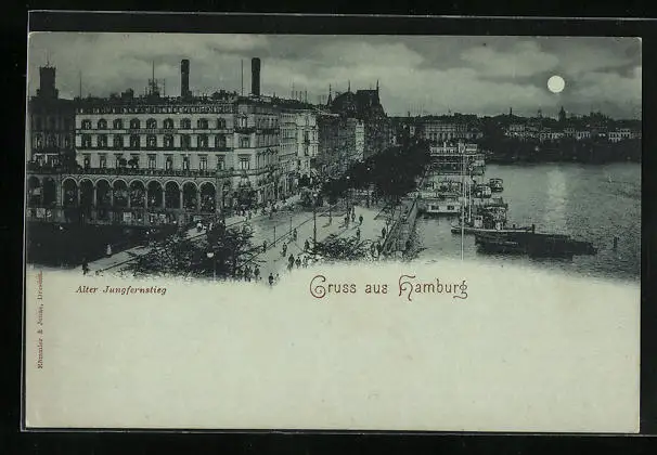 Mondschein-AK Hamburg-Neustadt, Strassenpartie am alten Jungfernstieg