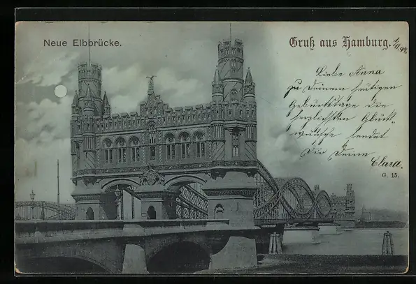 Mondschein-AK Hamburg-Rothenburgsort, Neue Elbbrücke