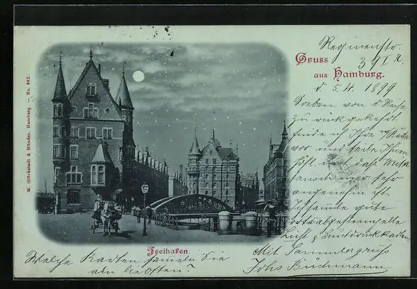 Mondschein-AK Hamburg, Strassenverkehr am Freihafen
