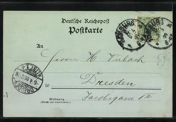 alte Ansichtskarte, gelaufen 1899, guter Zustand