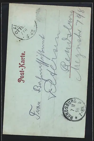 alte Ansichtskarte, gelaufen 1898, Briefmarke entfernt, rückseitig Oberflächenschaden, guter Zustand