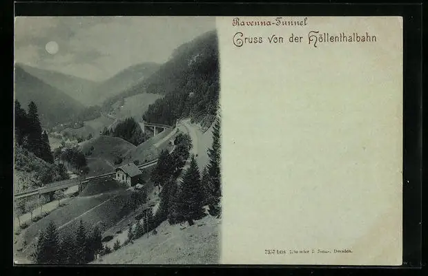 Mondschein-AK Höllsteig, Höllenthalbahn mit Ravenna-Tunnel