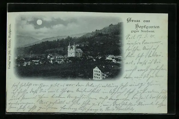 Mondschein-AK Hopfgarten, Ortsansicht im Vollmondlicht