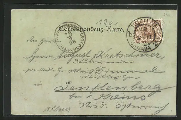 alte Ansichtskarte, gelaufen 1898, Stempelspur, Bugspur li. oben, guter Zustand