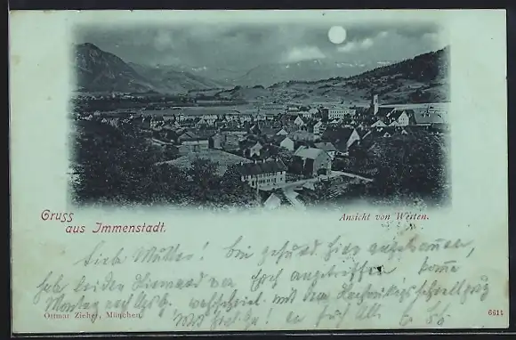 Mondschein-AK Immenstadt, Ansicht von Westen