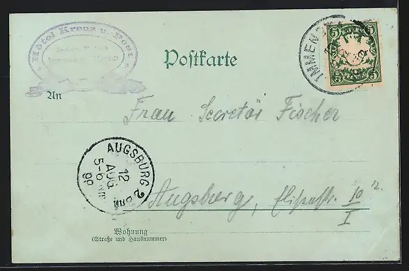 alte Ansichtskarte, gelaufen 1899, guter Zustand