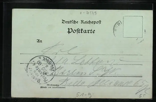alte Ansichtskarte, gelaufen 1900, Briefmarke entfernt, guter Zustand