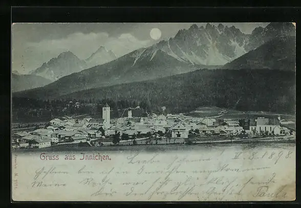 Mondschein-AK Innichen, Generalansicht der Stadt