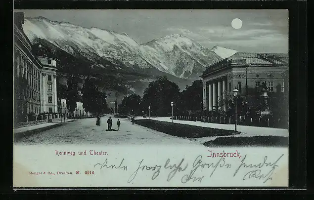 Mondschein-AK Innsbruck, Rennweg und Theater