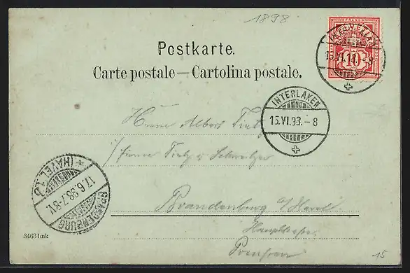 alte Ansichtskarte, gelaufen 1898, guter Zustand