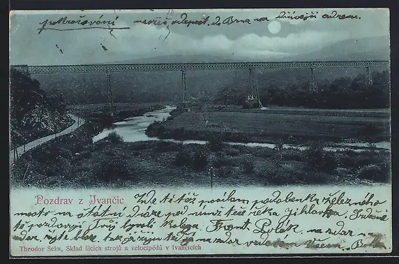Mondschein-AK Ivancice, Viadukt übers Flusstal