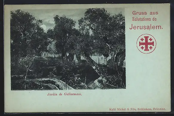 Mondschein-AK Jerusalem, Jardin de Gethsemani