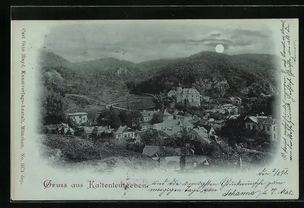 Mondschein-AK Kaltenleutgeben, Teilansicht