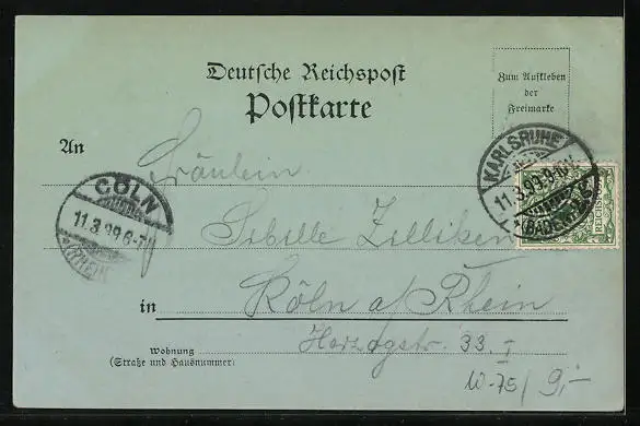 alte Ansichtskarte, gelaufen 1899, guter Zustand