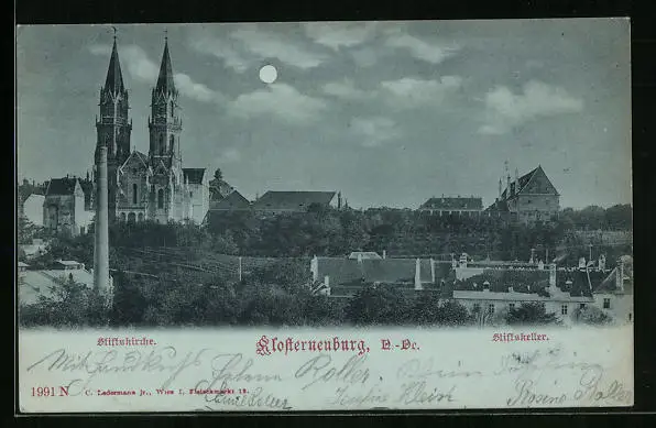 Mondschein-AK Klosterneuburg a. D., Stiftskirche, Stiftskeller