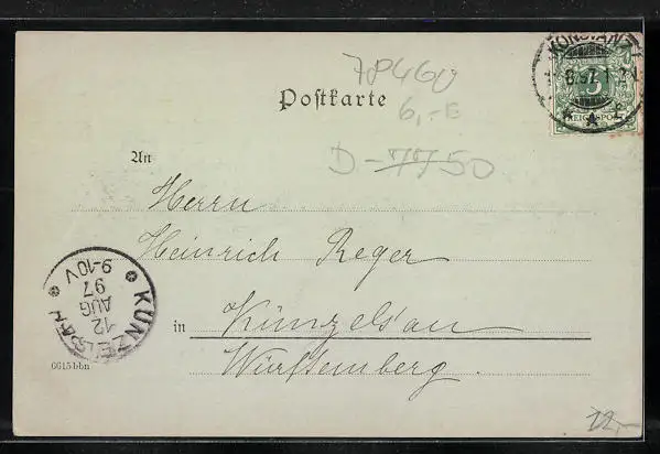 alte Ansichtskarte, gelaufen 1897, guter Zustand