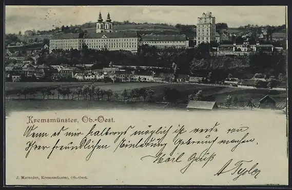 Mondschein-AK Kremsmünster /Ob.-Oest., Teilansicht mit Stift