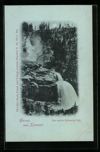Mondschein-AK Krimml, Der untere Krimmler Fall