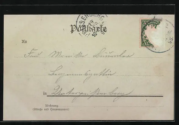 gelaufen 1898, Briefmarke entfernt, rückseitig Klebe- und Papierreste, guter Zustand