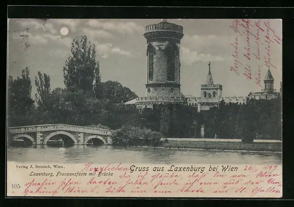 Mondschein-AK Laxenburg, Franzensfeste mit Brücke