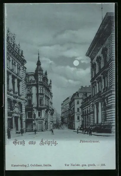 Mondschein-AK Leipzig, Partie in der Petersstrasse