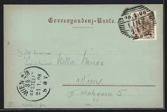 alte Ansichtskarte, gelaufen 1898, guter Zustand