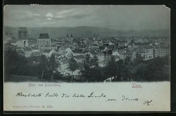 Mondschein-AK Linz /D., Blick vom Bauernberg