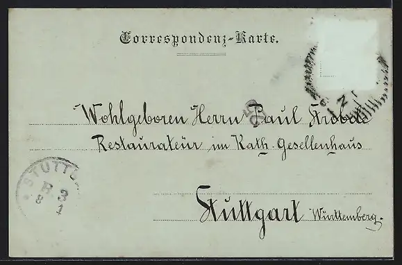 alte Ansichtskarte, gelaufen, Stempelspur, Briefmarke entfernt, rückseitig Oberflächenschaden, guter Zustand