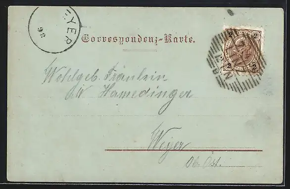 alte Ansichtskarte, gelaufen 1898, guter Zustand