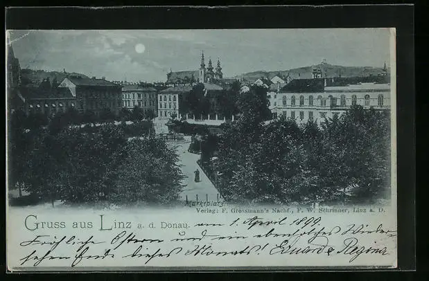 Mondschein-AK Linz a. D., Blick auf den Marktplatz
