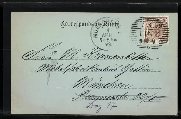 alte Ansichtskarte, gelaufen 1899, Eckknick li. oben, guter Zustand