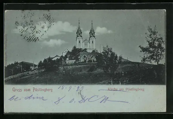 Mondschein-AK Linz a. D., Kirche am Pöstlingberg
