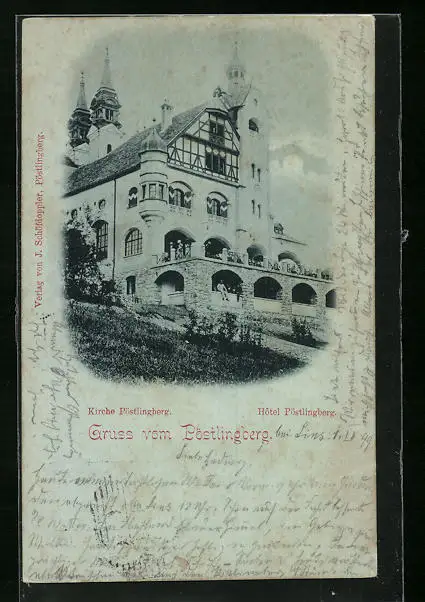 Mondschein-AK Linz a. D., Kirche und Hotel Pöstlingberg