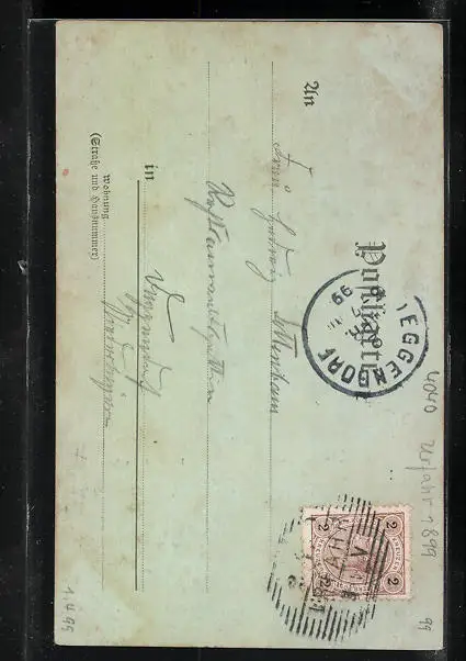 alte Ansichtskarte, gelaufen 1899, Stempelspur, guter Zustand