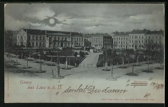 Mondschein-AK Linz a. d. D., Marktplatz