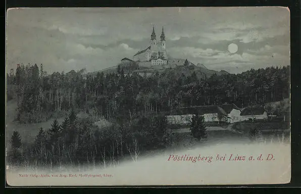 Mondschein-AK Linz a. d. Donau, Blick auf den Pöstlingberg