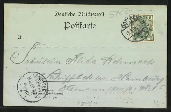 alte Ansichtskarte, gelaufen 1900, leicht fleckig, Eckknicke re., sonst guter Zustand