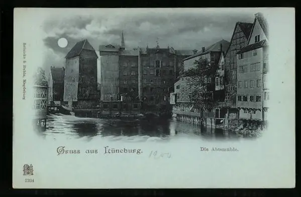 Mondschein-AK Lüneburg, Die Abtsmühle im Vollmondlicht