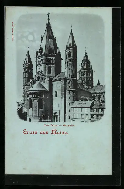 Mondschein-AK Mainz am Rhein, Ostseite des Doms