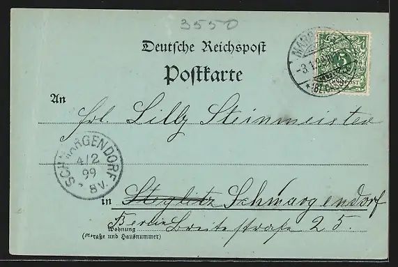 alte Ansichtskarte, gelaufen 1899, Bugspur rechts oben, guter Zustand