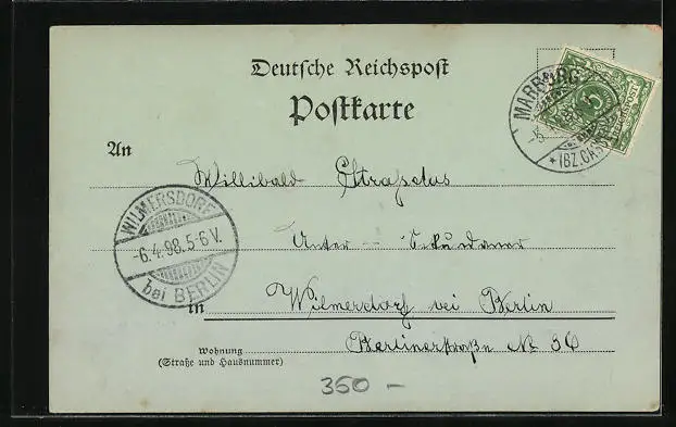alte Ansichtskarte, gelaufen 1898, guter Zustand