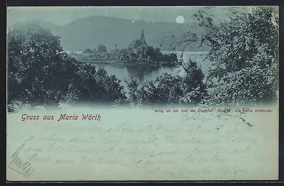 Mondschein-AK Maria Wörth, Panorama mit Kirche