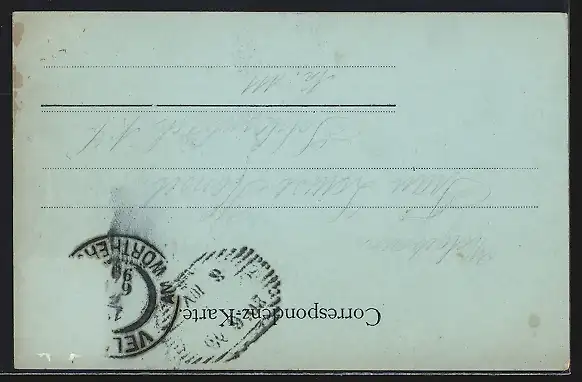 alte Ansichtskarte, gelaufen 1899, Briefmarke entfernt, rückseitig Oberflächenschaden, Stempelspur, guter Zustand