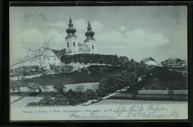 Mondschein-AK Mariataferl, Teilansicht mit Kirche