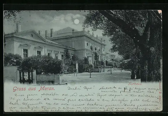 Mondschein-AK Meran, Blick zum Kurhaus