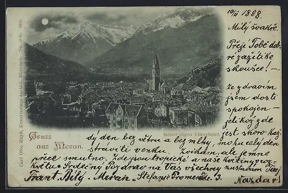 Mondschein-AK Meran, Gesamtansicht gegen Vintschgau