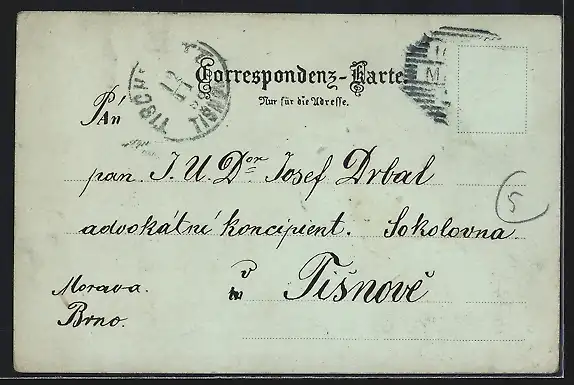 gelaufen 1899, Briefmarke entfernt, Eckknick li. unten, guter Zustand